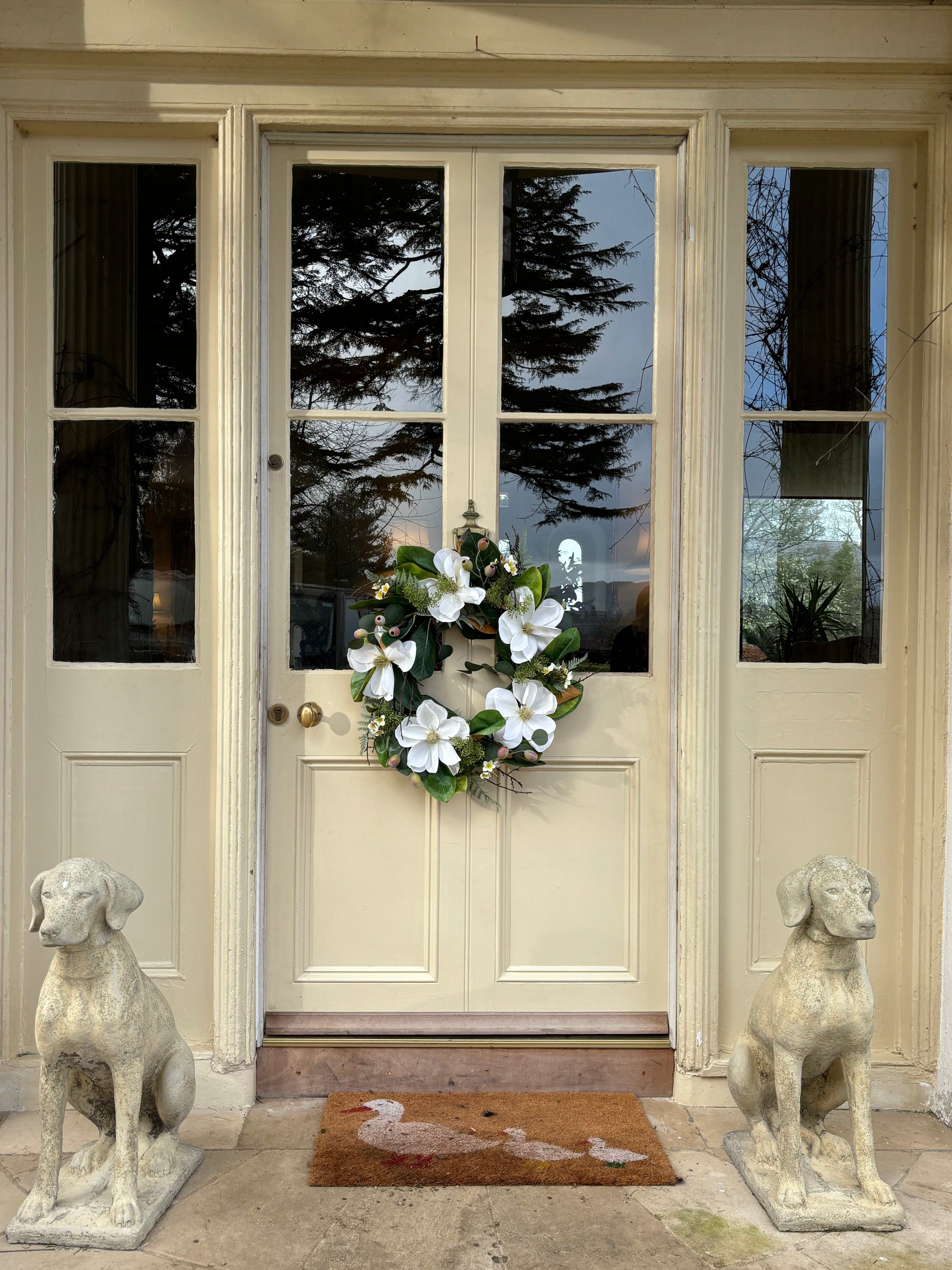 Timeless, elegant and effortlessly beautiful. This Magnolia Flower Wreath showcases crisp white blooms, natural-looking buds, and lush greenery for a sophisticated look this season. Measuring 60cm, this exquisite spring wreath is crafted from high-quality silk flowers, making it a perfect choice for year-round decoration.